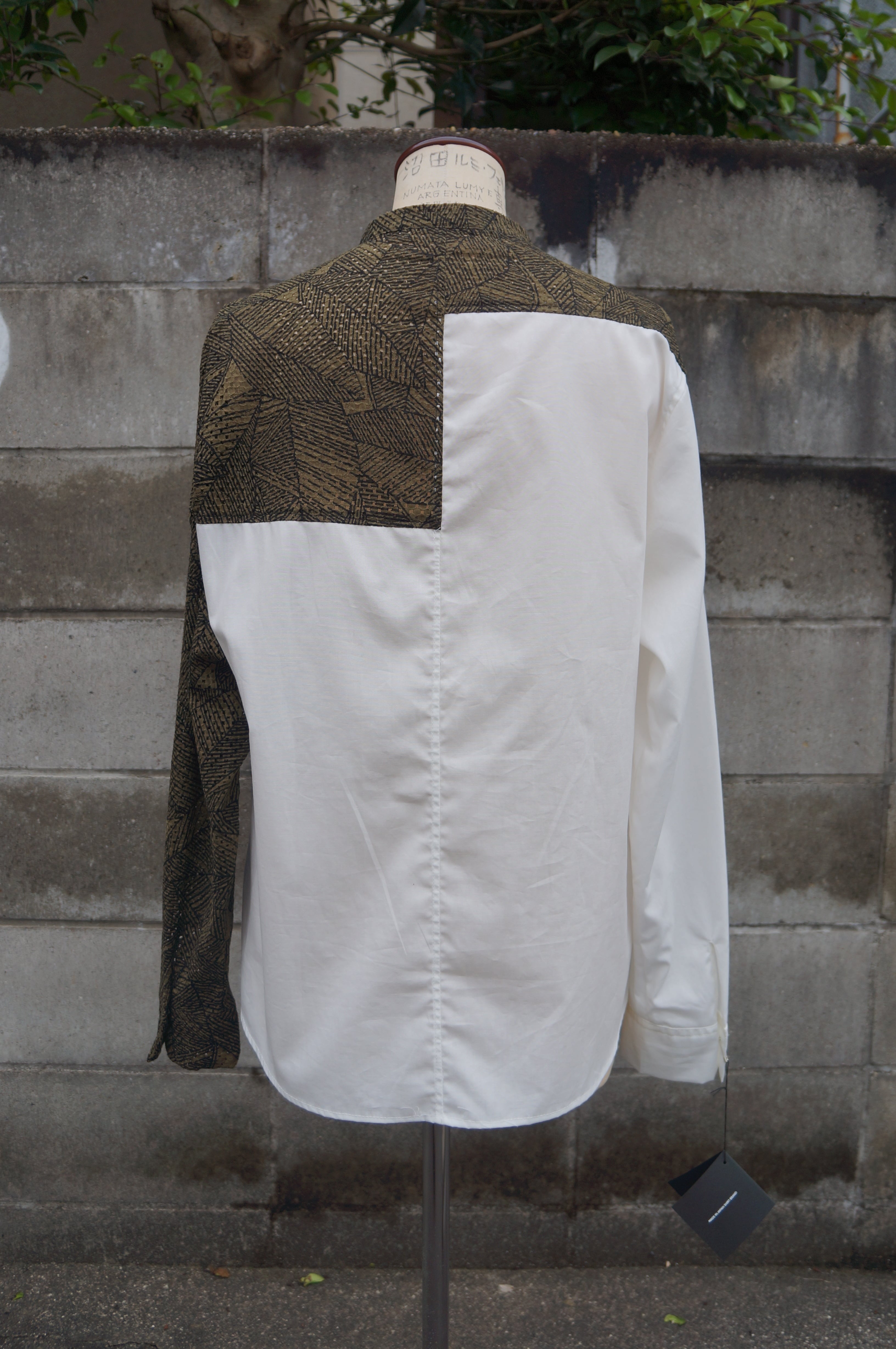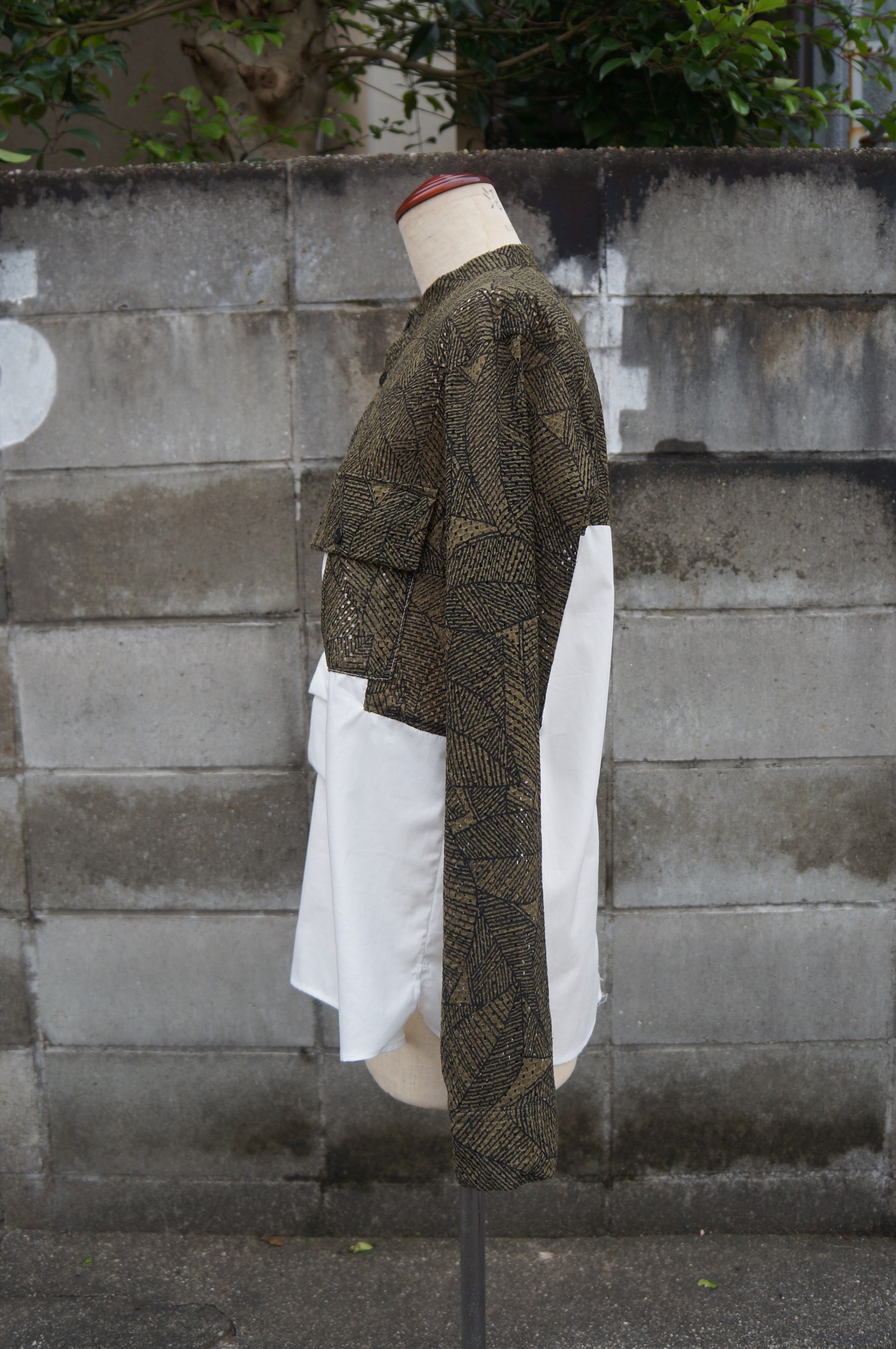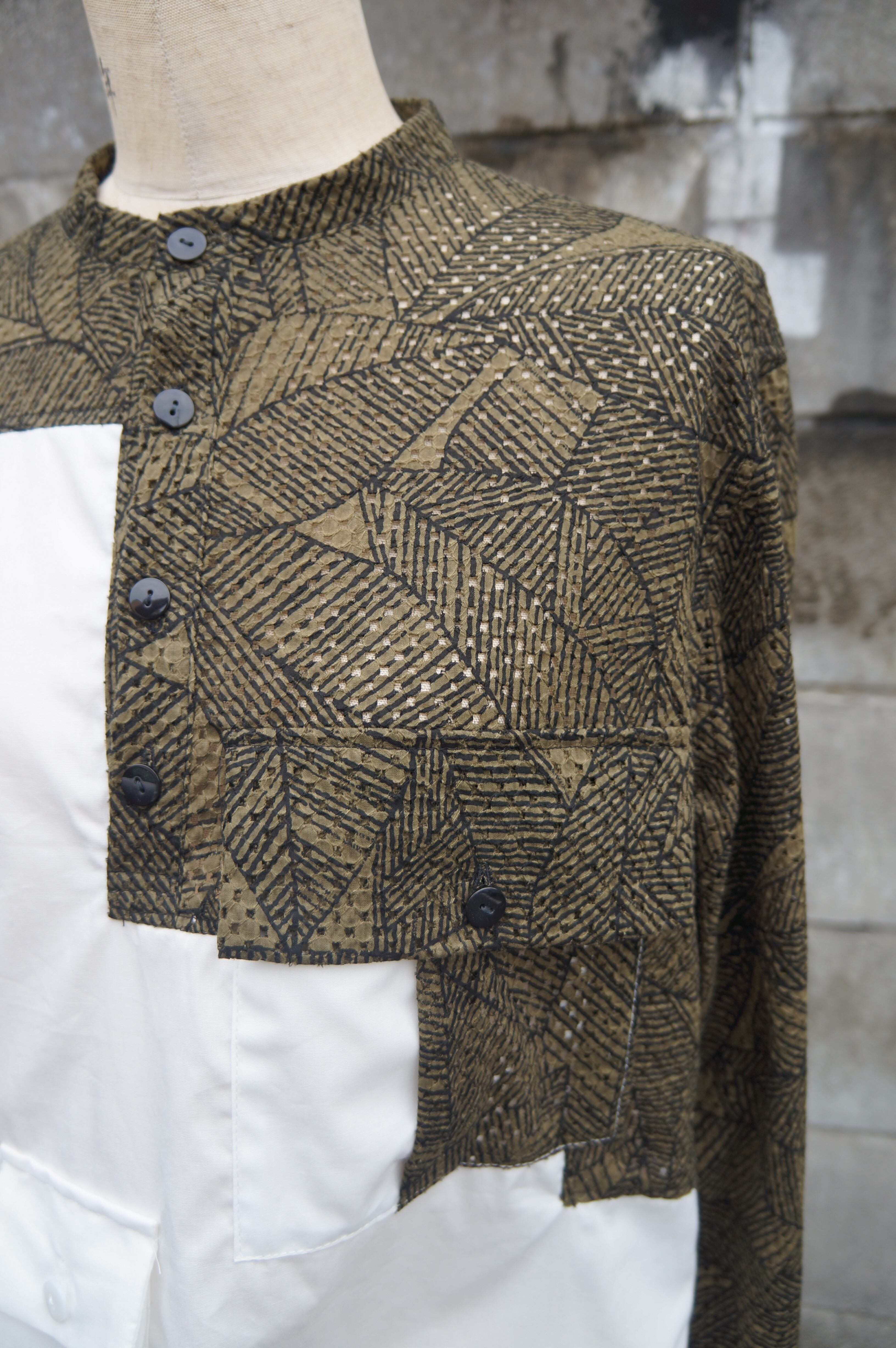 ブロードでしっかりとした素材を使用したホワイト部分と刺繍されたローンに更にプリントを施し一手間加えたメッシュ素材のカーキ部分。