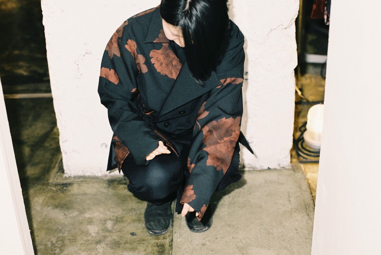 巡り巡ったマテリアル達を縫い合わせ生まれた美しいシルエットからは80sレトロな雰囲気とダークな上品さが漂う。