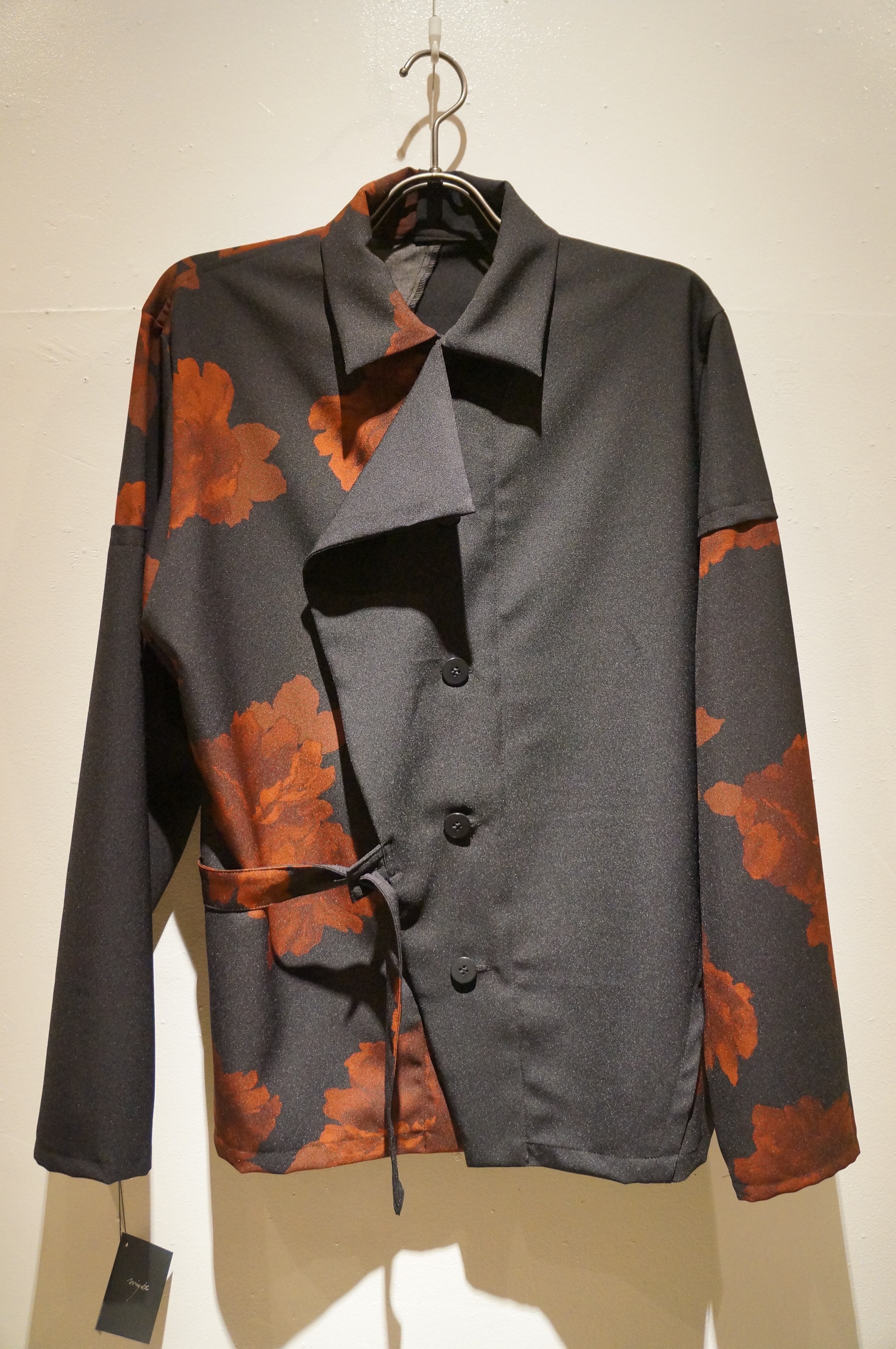 柔らかくハリのある上品なポリエステル100%を採用したアシンメトリーなデザイン、シルエットから成る軽めのジャケット。