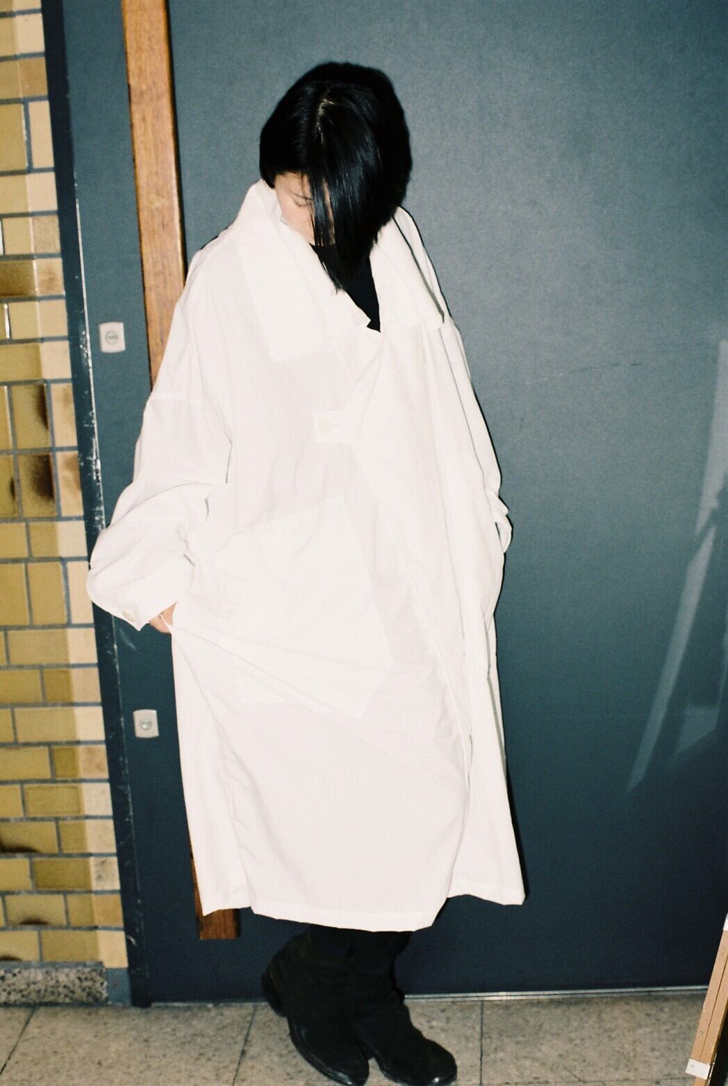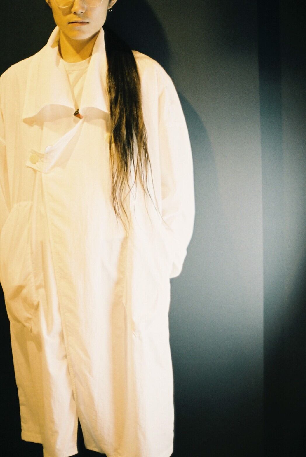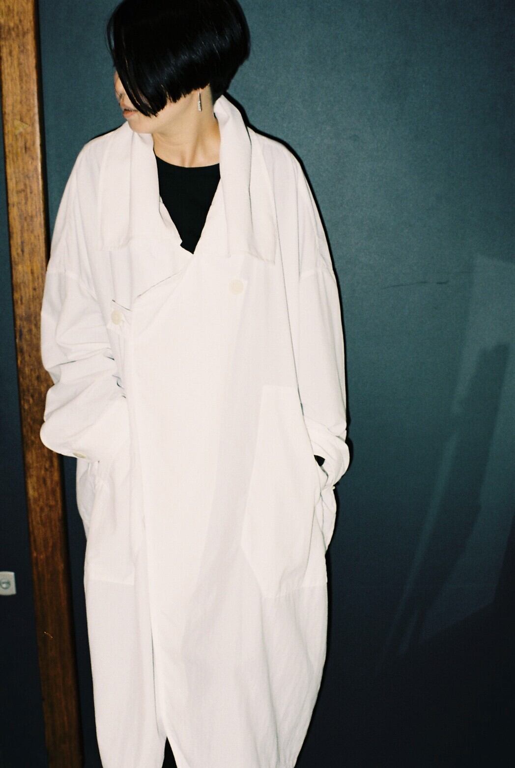 大きな衿とフロント部分の存在感、そしてルーズ&ワイドなシルエットで様々な表情を魅せてくれる役者な一枚。