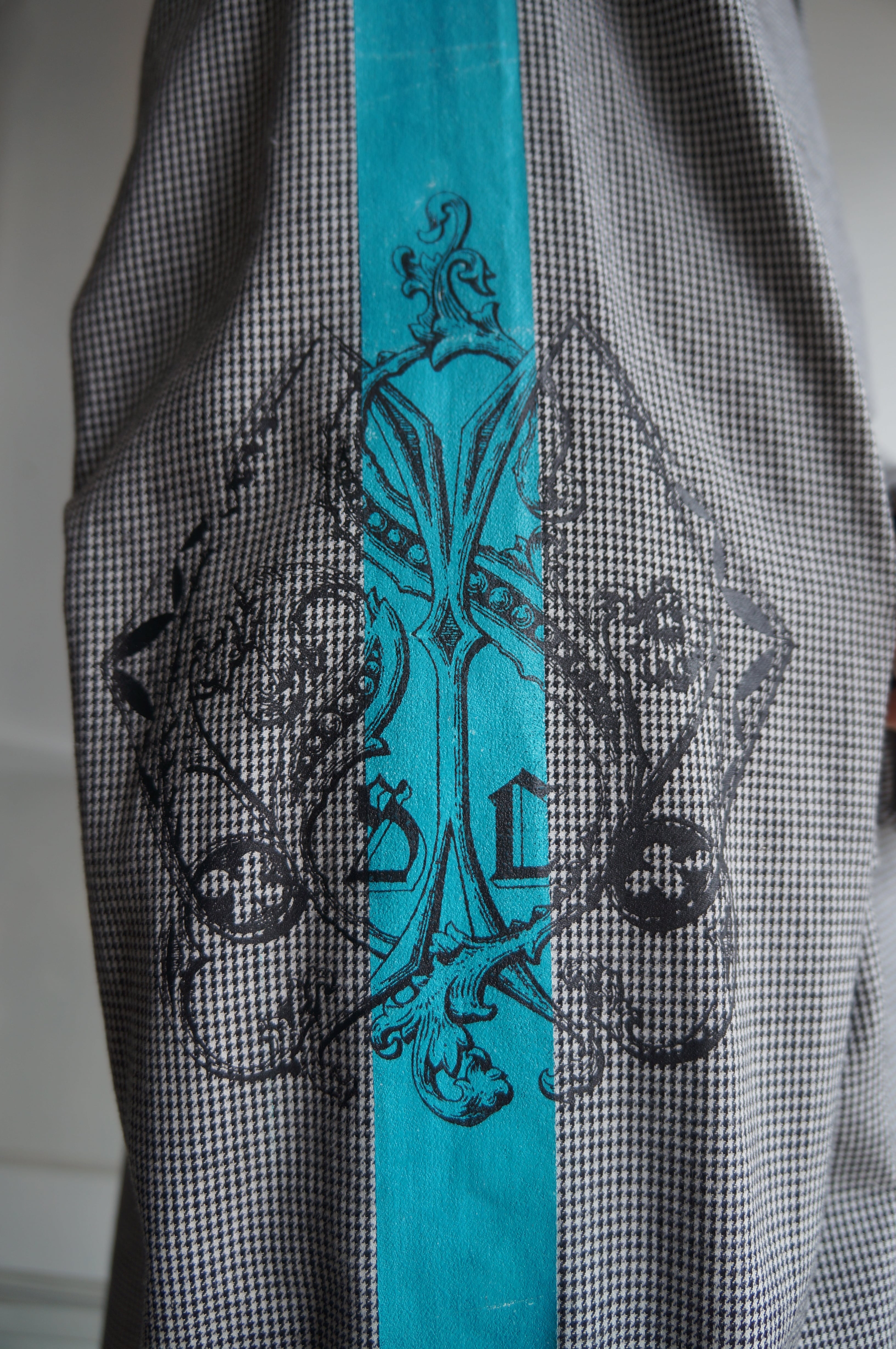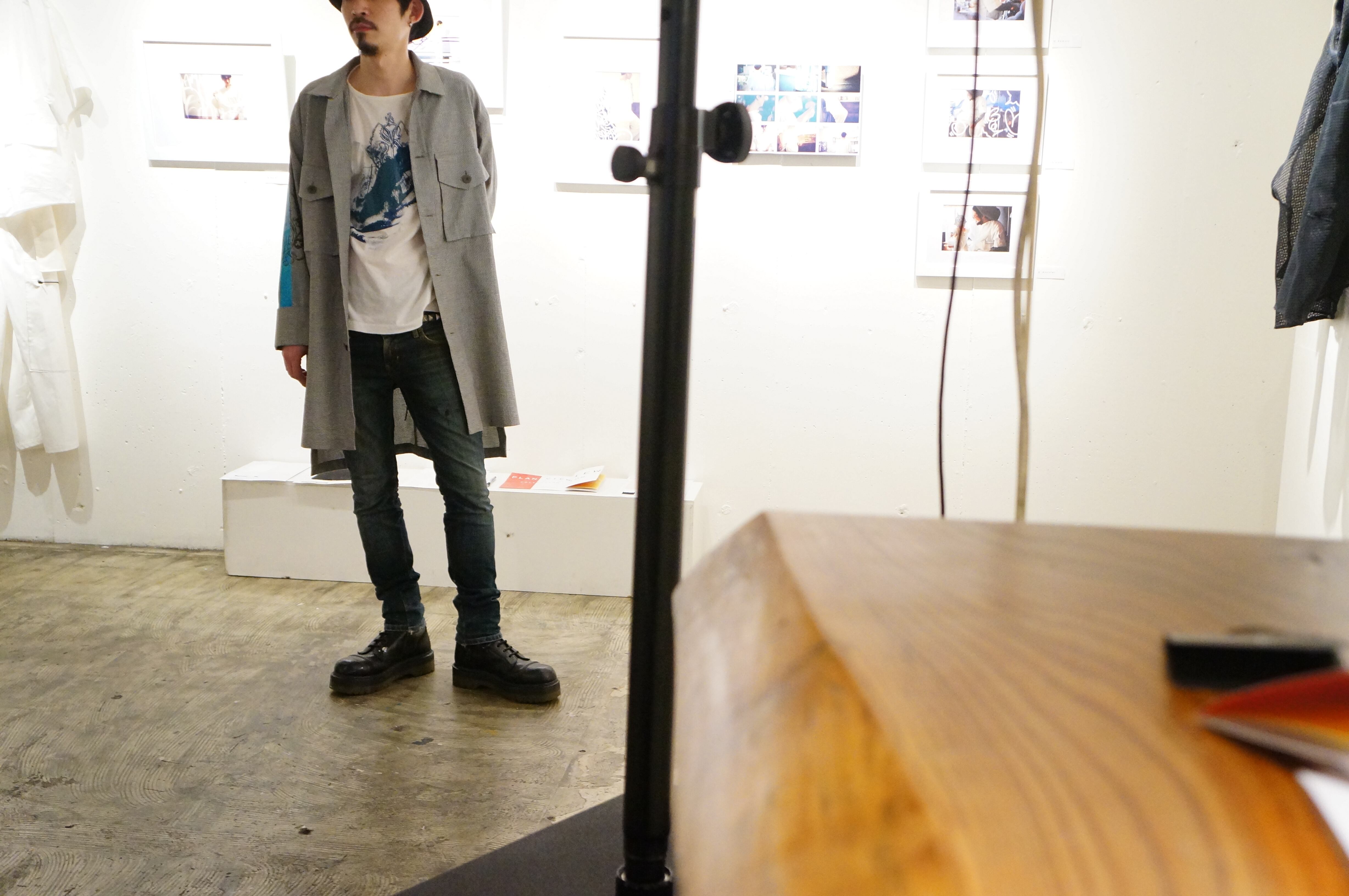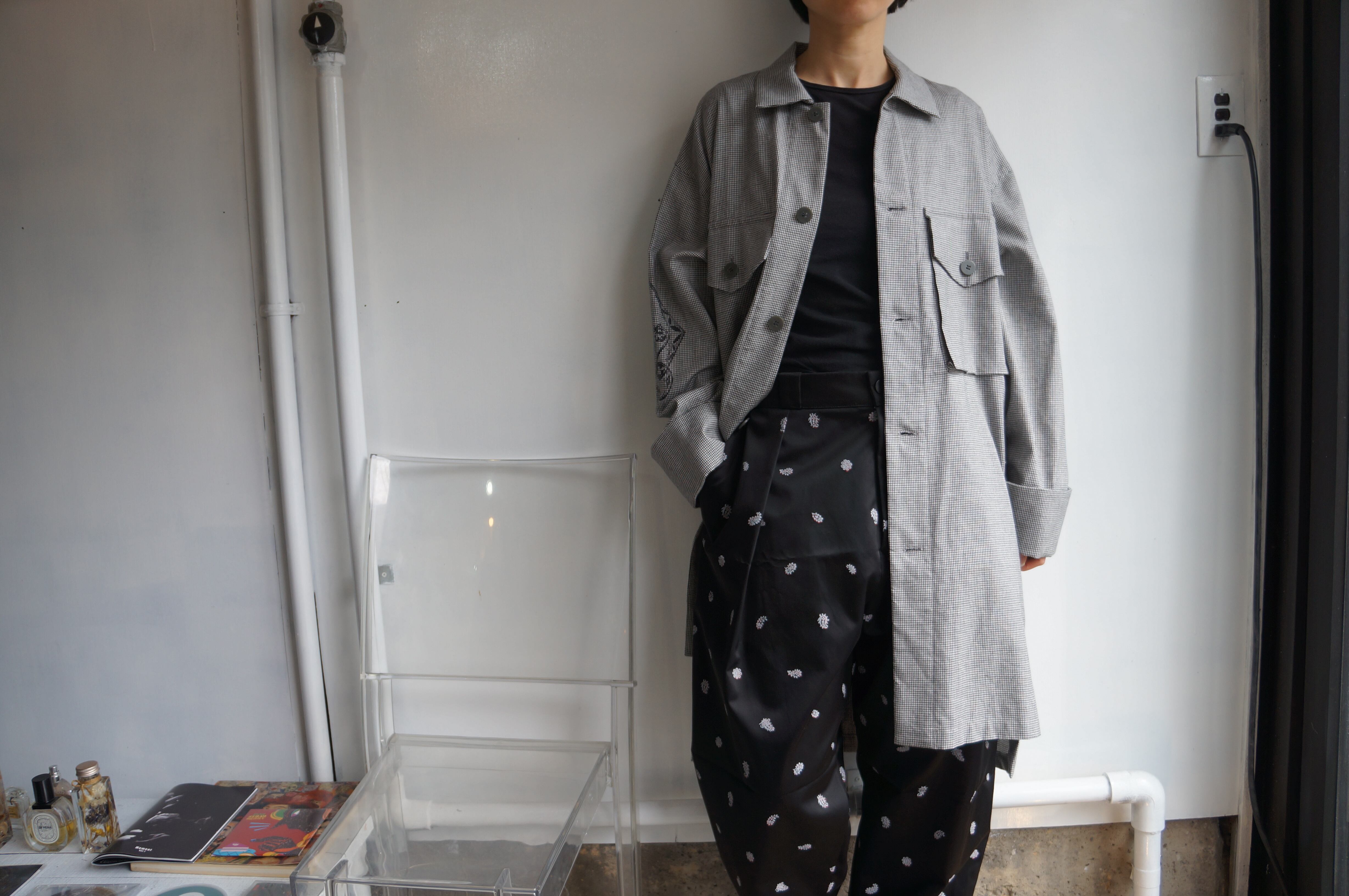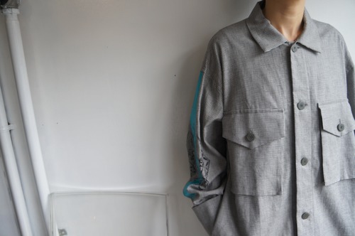 大きめのステンカラーと袖口の折り返し、ATOSONE氏が施した右袖のプリントにより羽織るだけで存在感抜群。