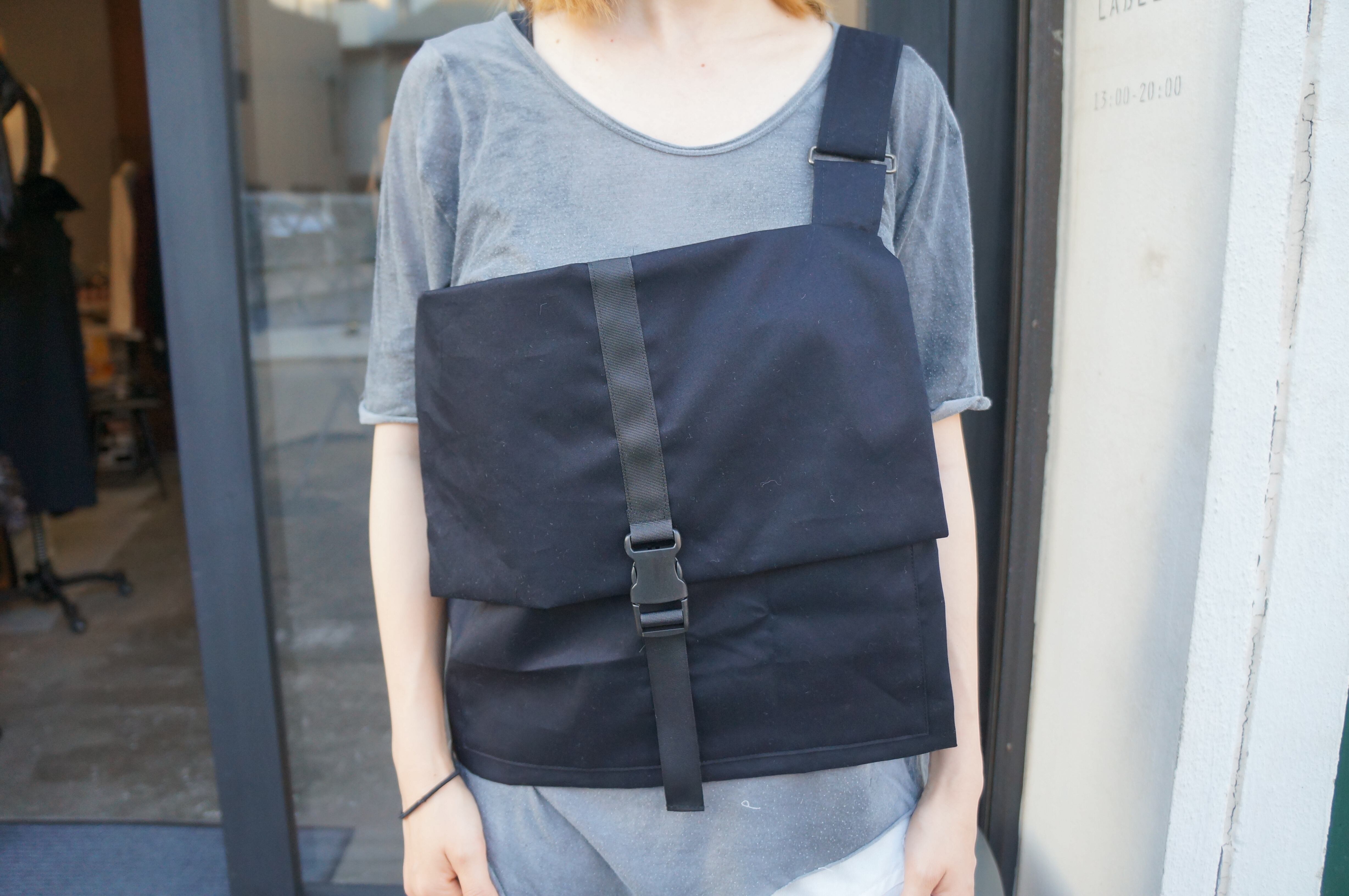 「バッグを着用する」という新しい感覚で、前後に収納箇所を設けたバッグです。