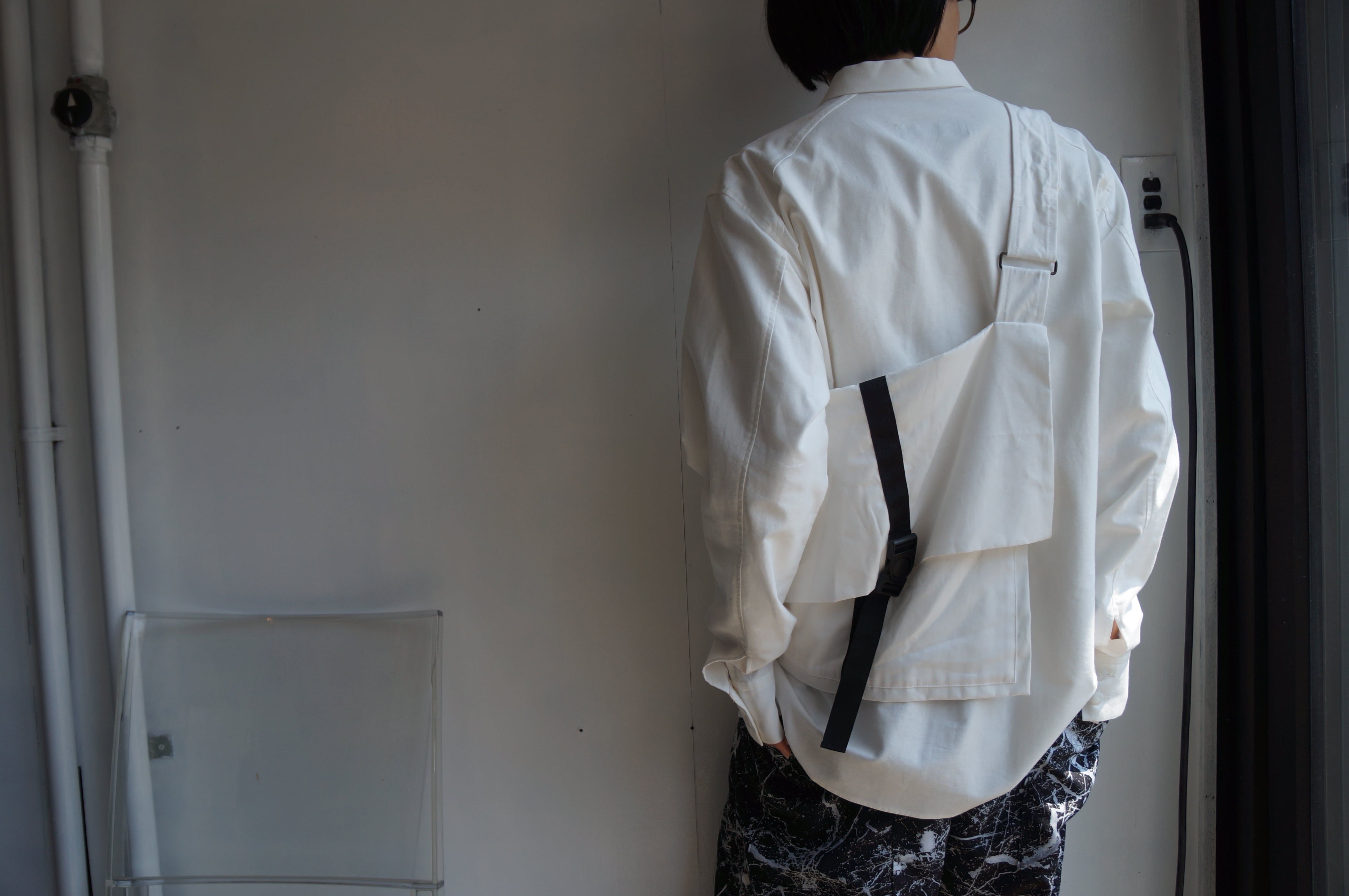 「バッグを着用する」という新しい感覚で、前後に収納箇所を設けたバッグです。