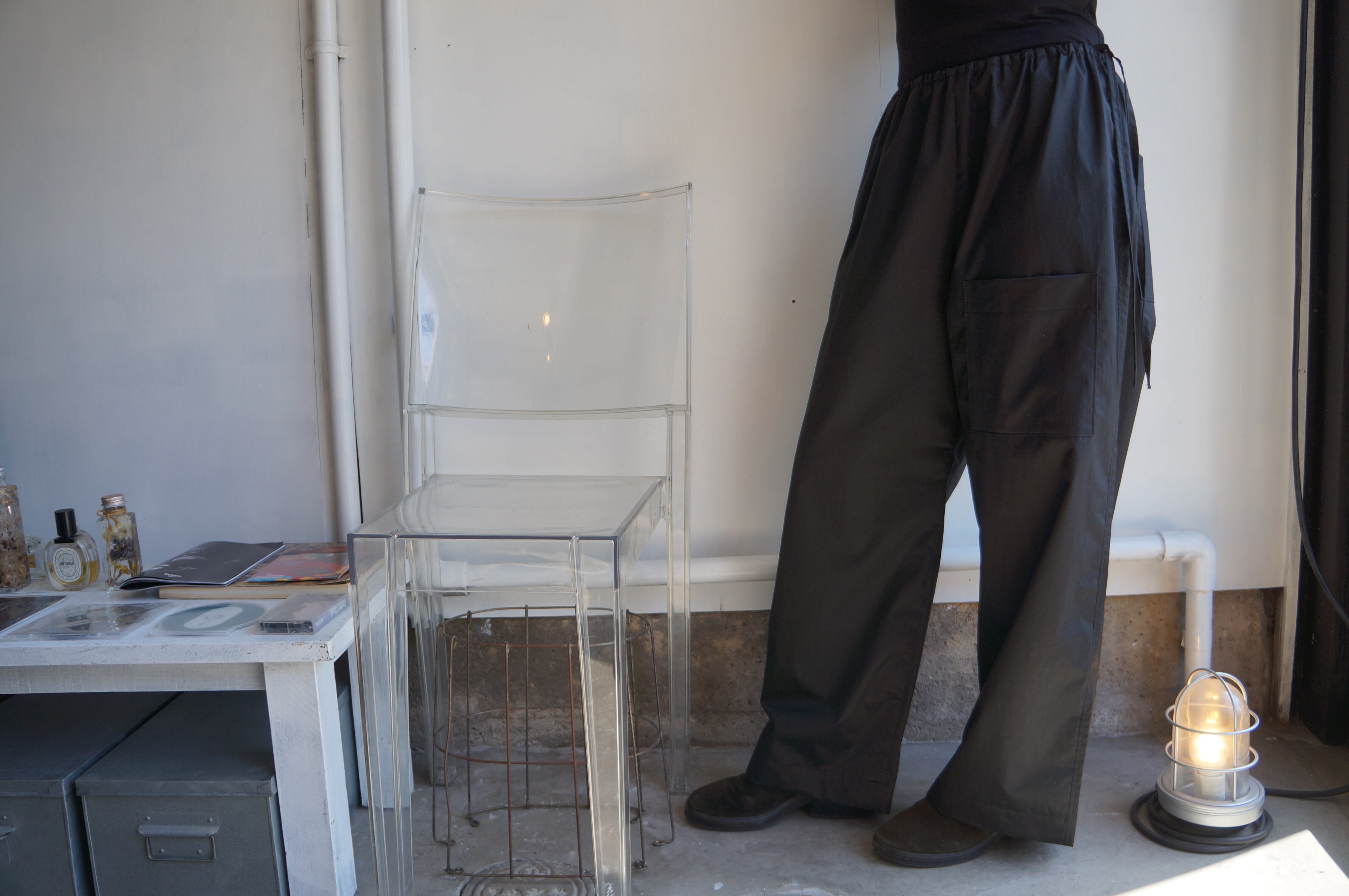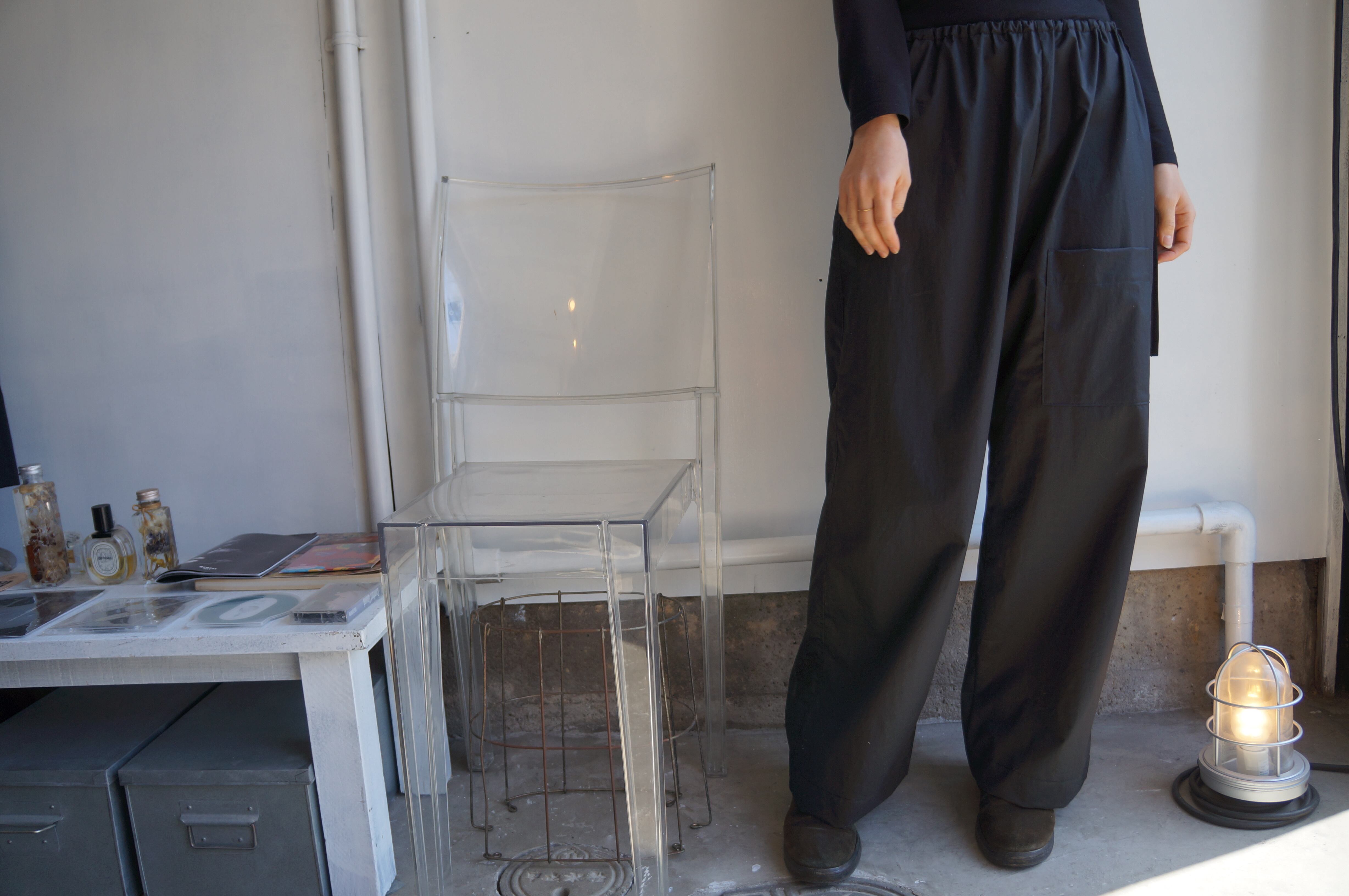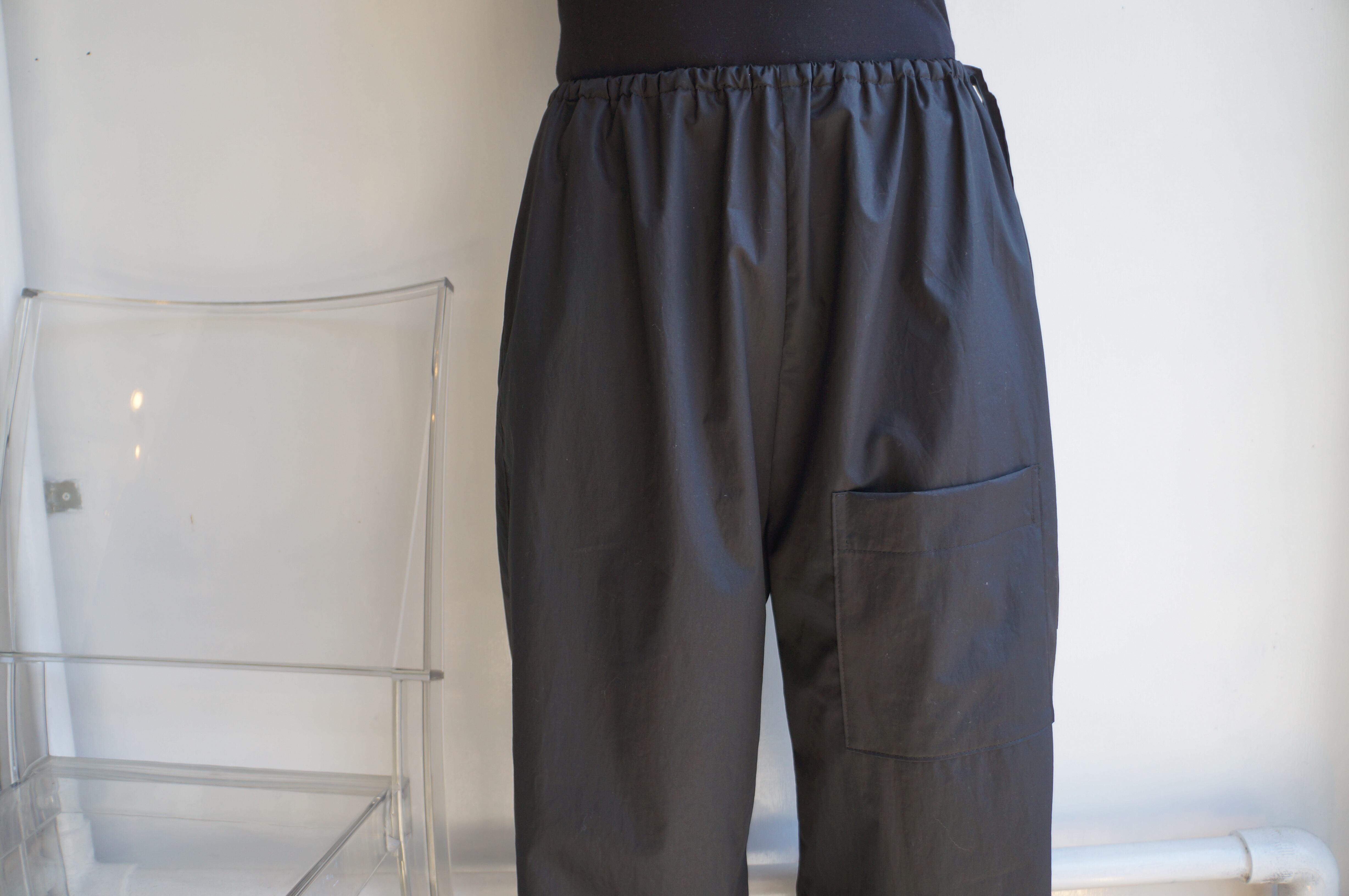 FREE/ ウエスト:76cm 着丈:95cm 股下:62cm 裾幅:56cm COLOR/ BLACK 綿:100% MODEL WOMAN(162cm)