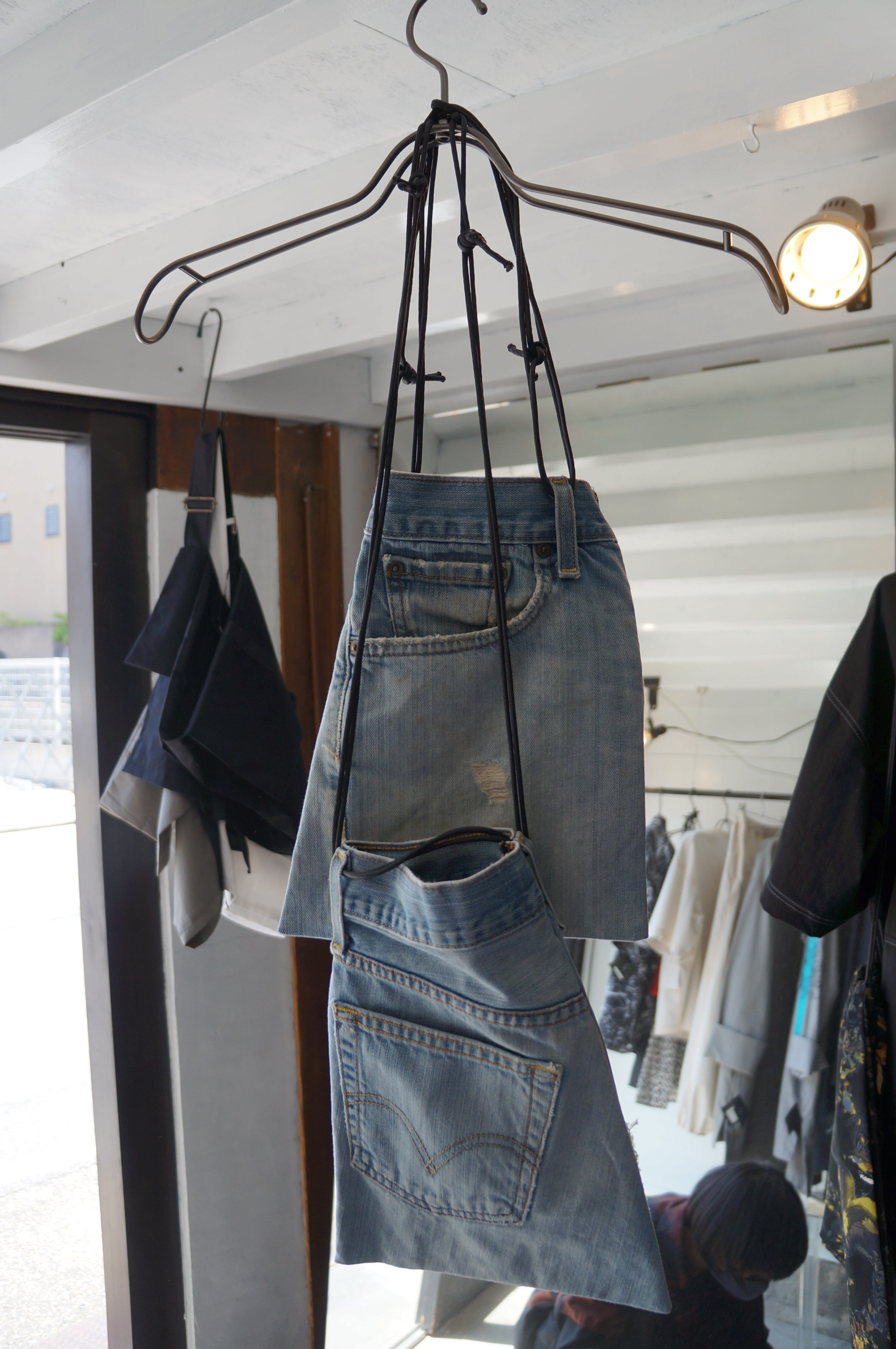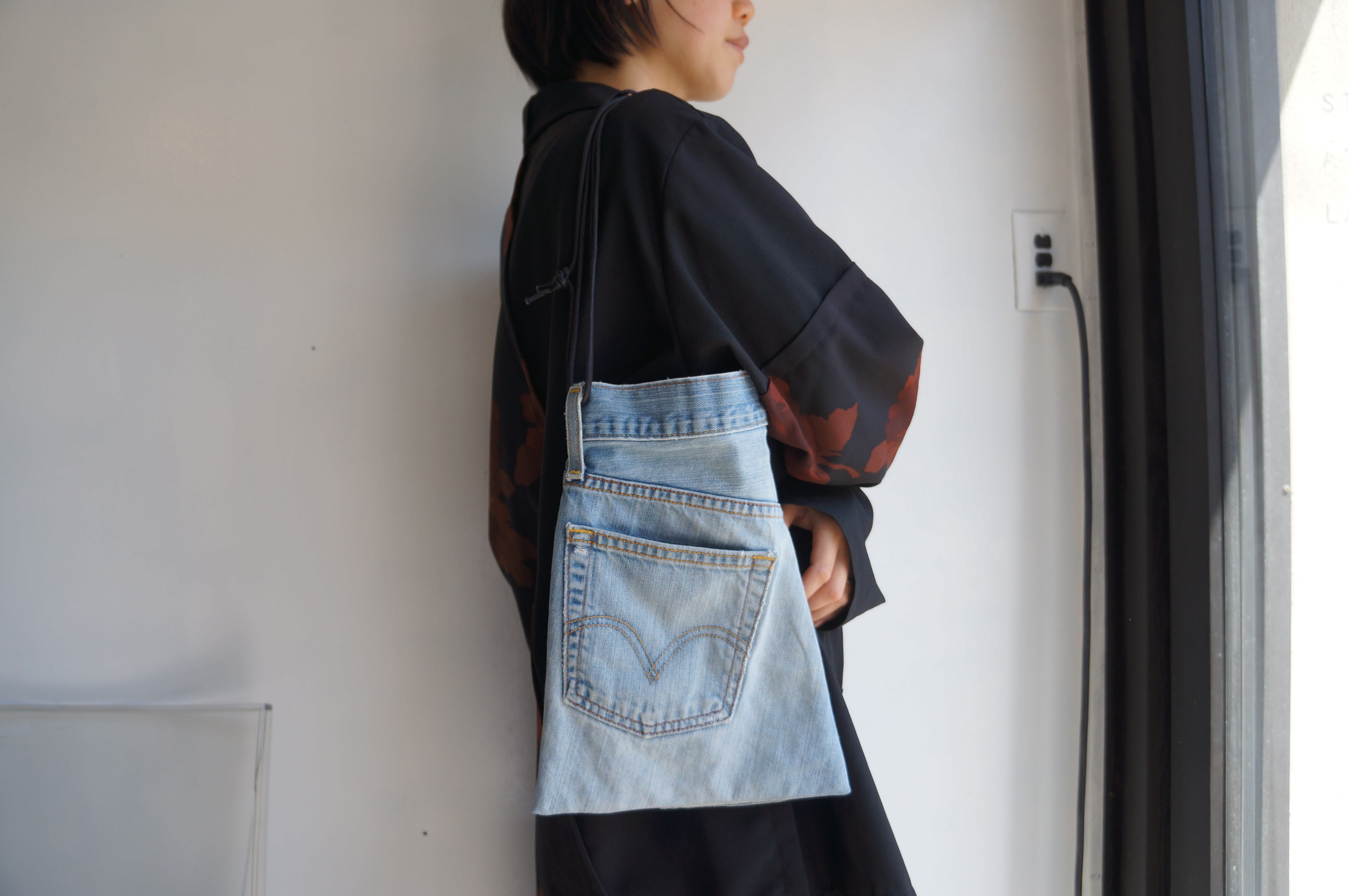 デニムパンツをリメイクしたバッグです。ちょっとしたお出掛けやアクセントに。