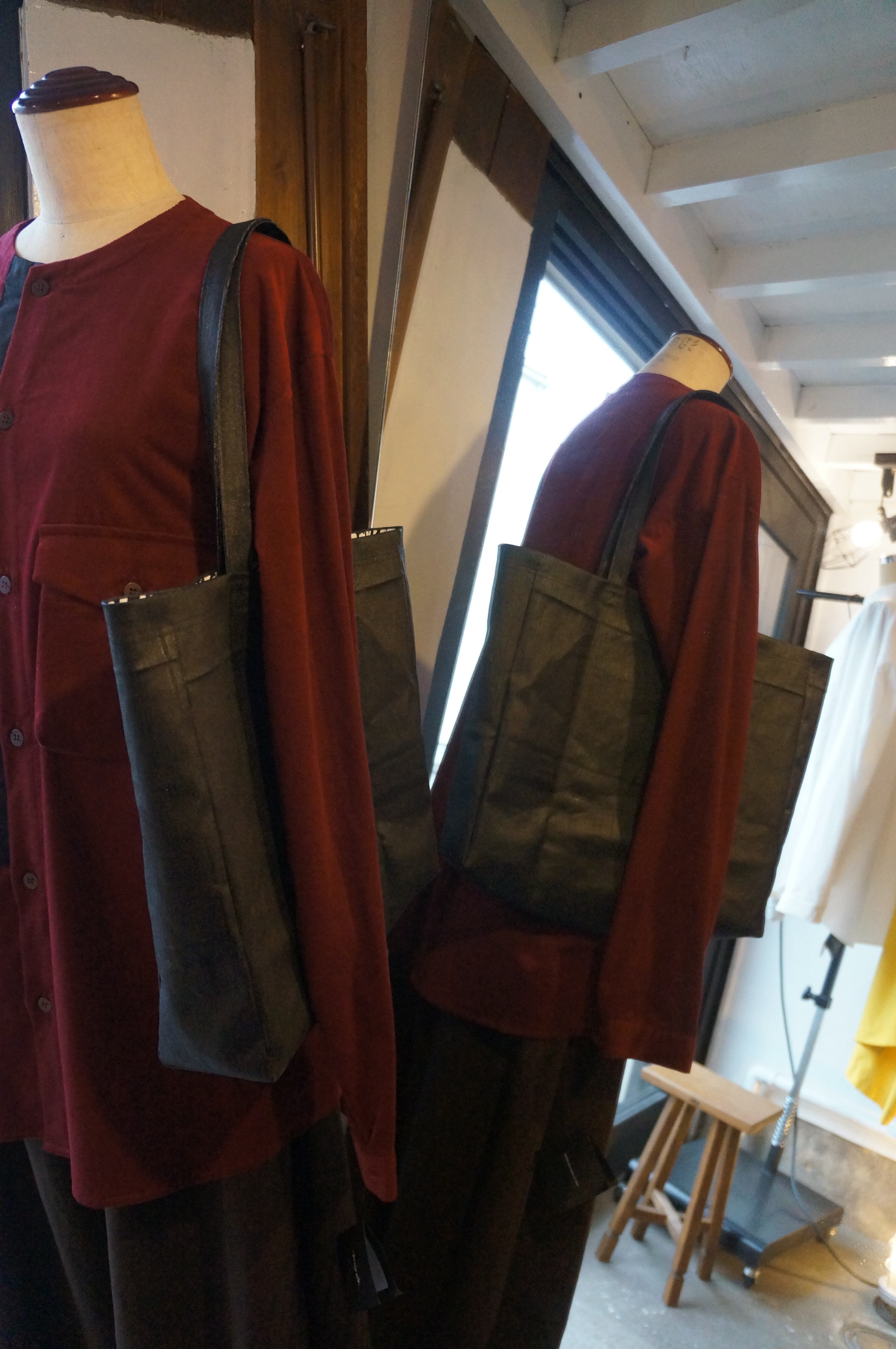 ブラックのコーティングデニムにインナーはクール且つキュートな柄で格好良くて可愛い。